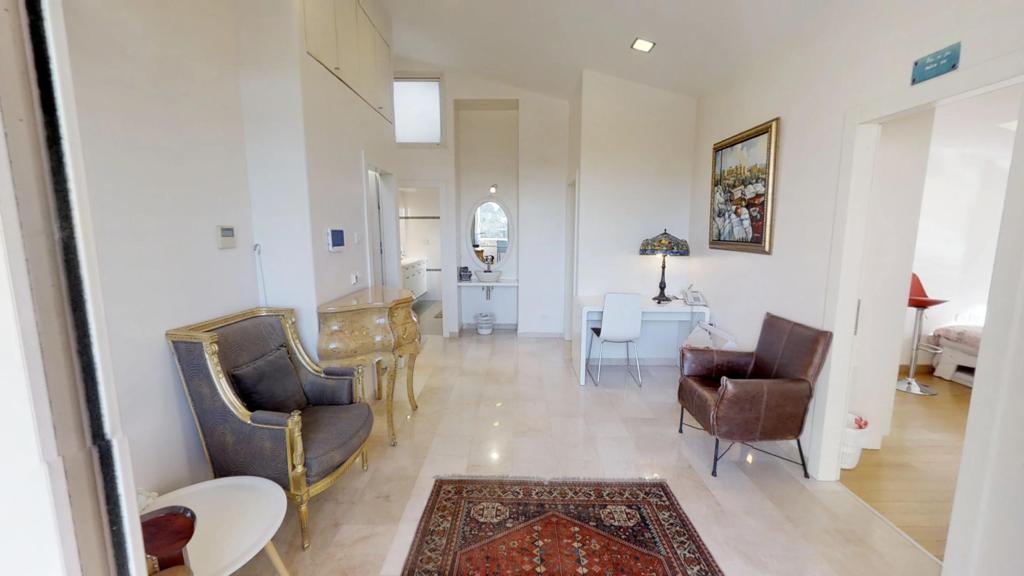 Gorgeous duplex penthouse located in the heart of Shaarei Chessed Has 5 bedrooms, an office and a security room, and 5 full bathrooms. The home comes with numerous sukkah porches, a large approximate 25 SQM sukkah porch off the living area, a cute eating sukkah porch off the kitchen eating area, and a sleeping sukkah with gorgeous views of Gan Sacker and the Knesset on the bedroom floor. The elevator opens up into both levels of the home. The property has ownership of the rooftop. It also comes with an additional storage area which is a great convenience. Reach out for a walkthrough video! Don’t miss out on the unique opportunity!!