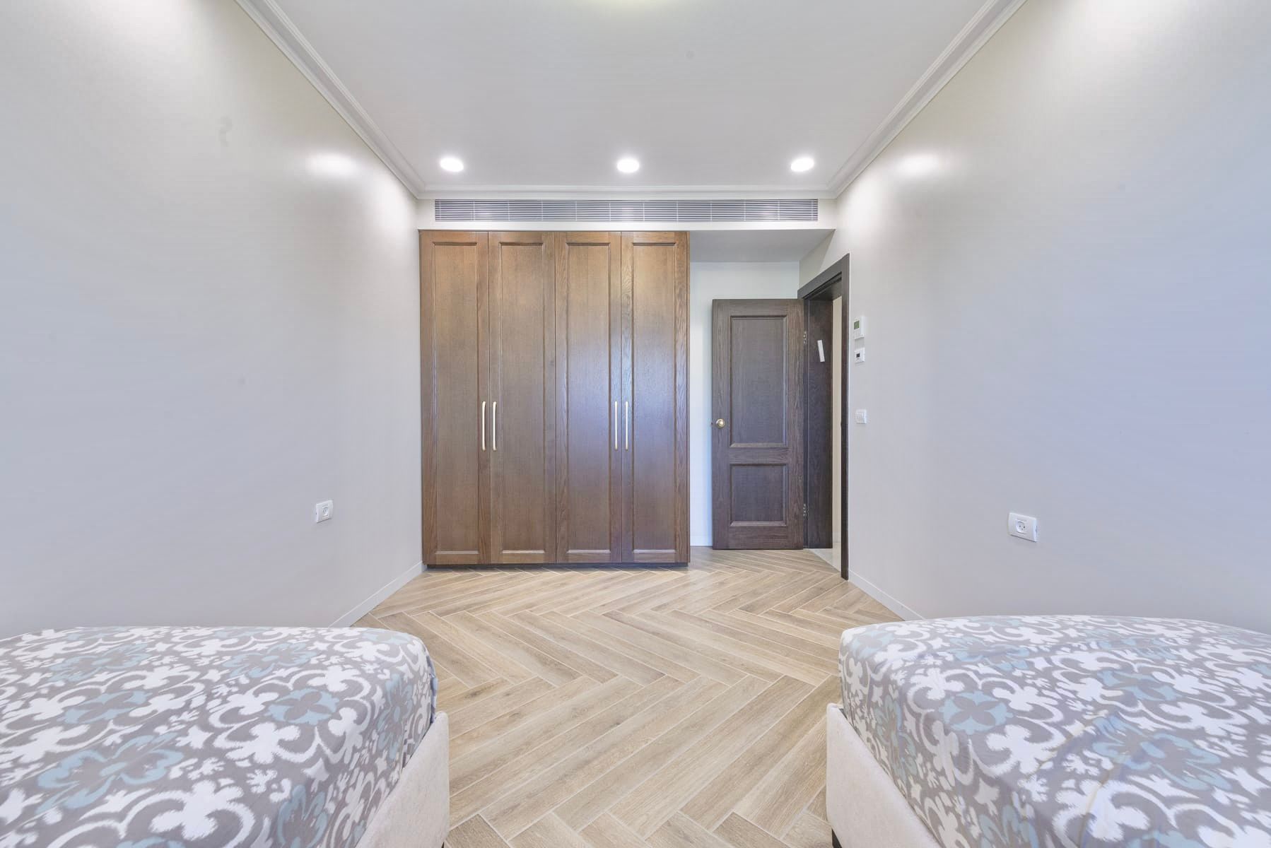 2Twin Sized Beds The fifth bedroom has two twin-sized beds and closet space.