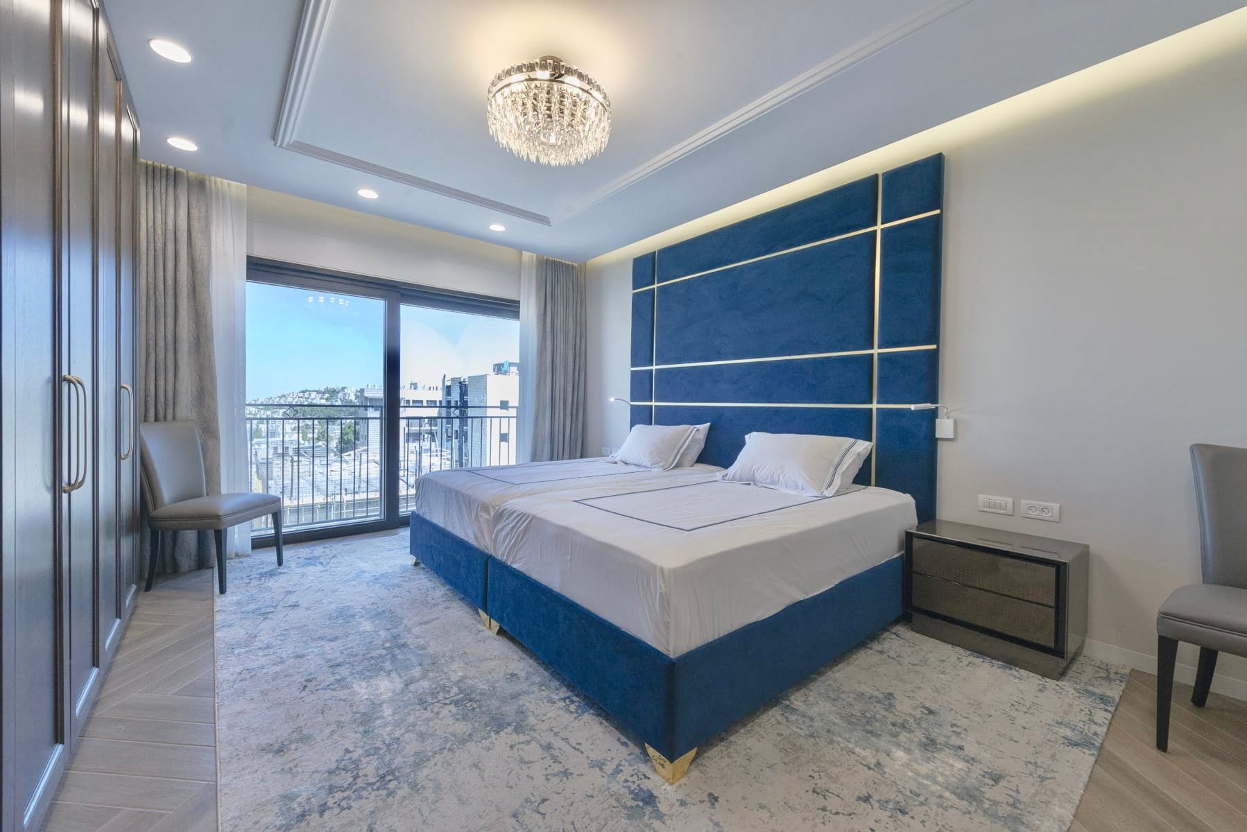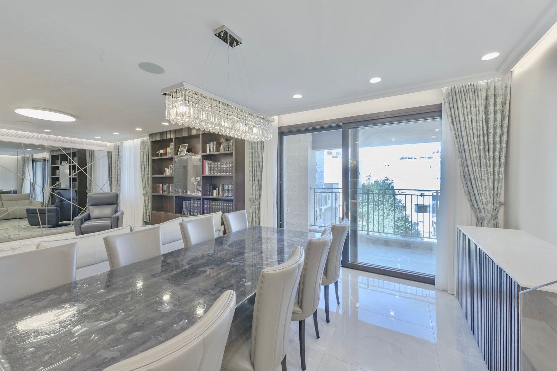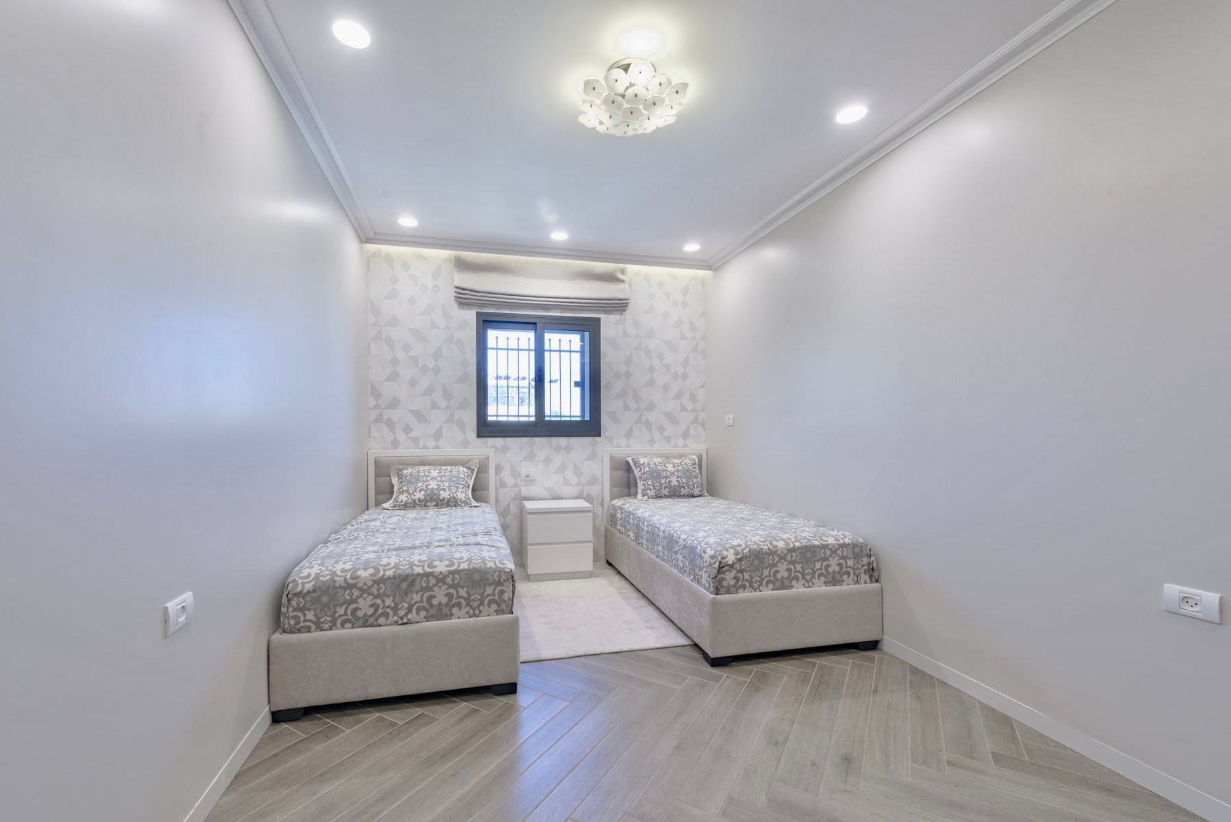 Beautifully renovated apartment centrally located in the Ramat Eshkol neighborhood. The apartment has four bedrooms plus a baby nursery and office area. The living space is nice and large including a balcony and a playroom for the children. The apartment has many great amenities such as central AC, storage space, Weber Grill, Kids Toys, Sound System, Printer, Shabbos Elevator and a Sukkah Porch. Don't wait, book this apartment today!