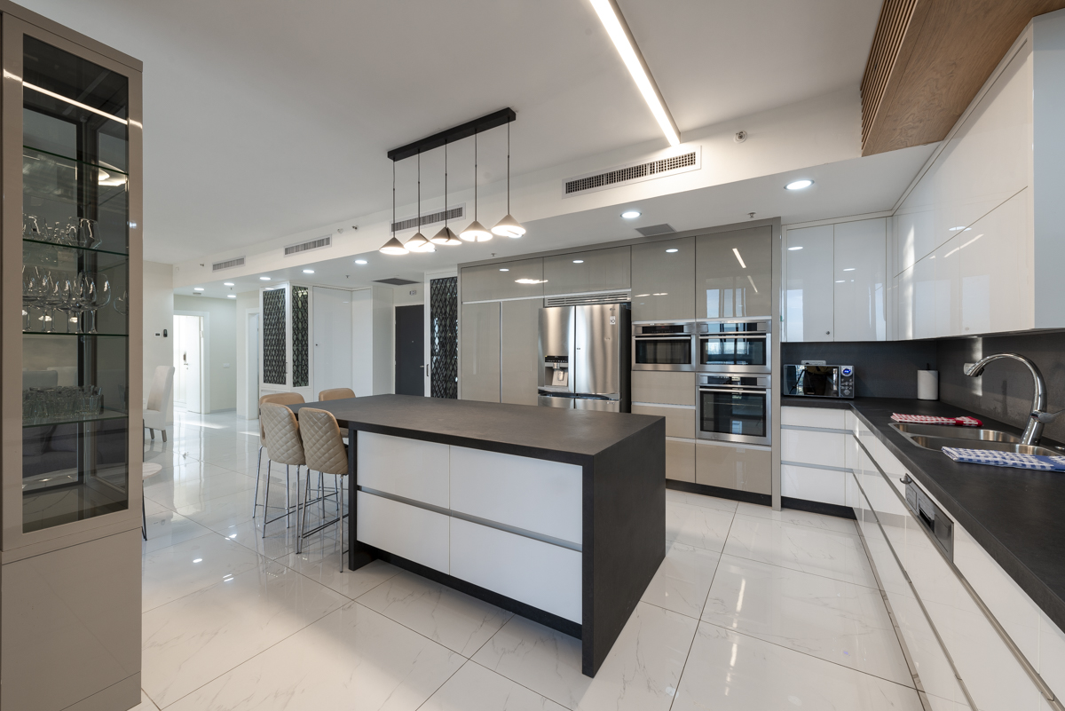 Luxury three bedroom apartment located in the highly sought after Jtower project. This apartment has a large, open living space with a living room, dining room, and kitchen. There are three bedrooms, two and a half bathrooms, and access to the rooftop which has incredible views of the surrounding area. The building is centrally located near Yaffo, Geula, and the Shuk. Don't wait, book this apartment today!