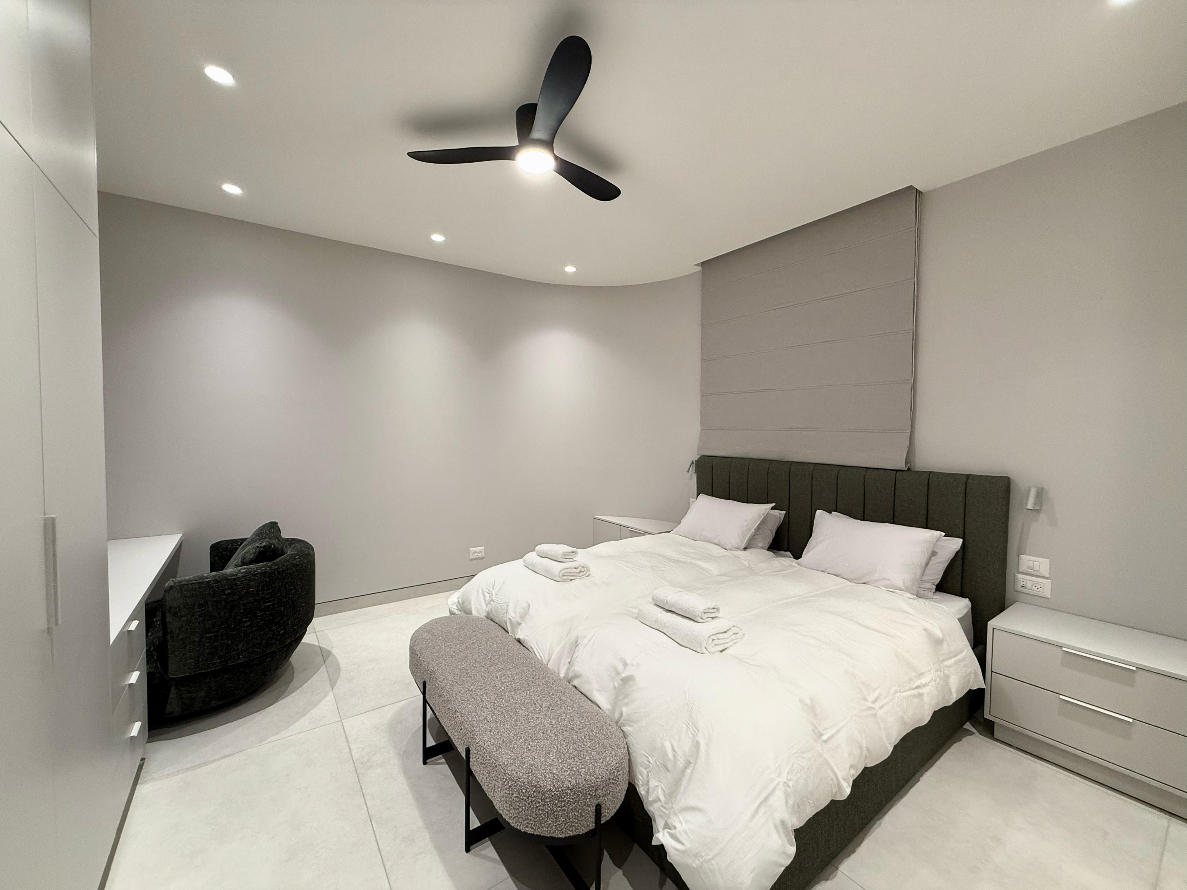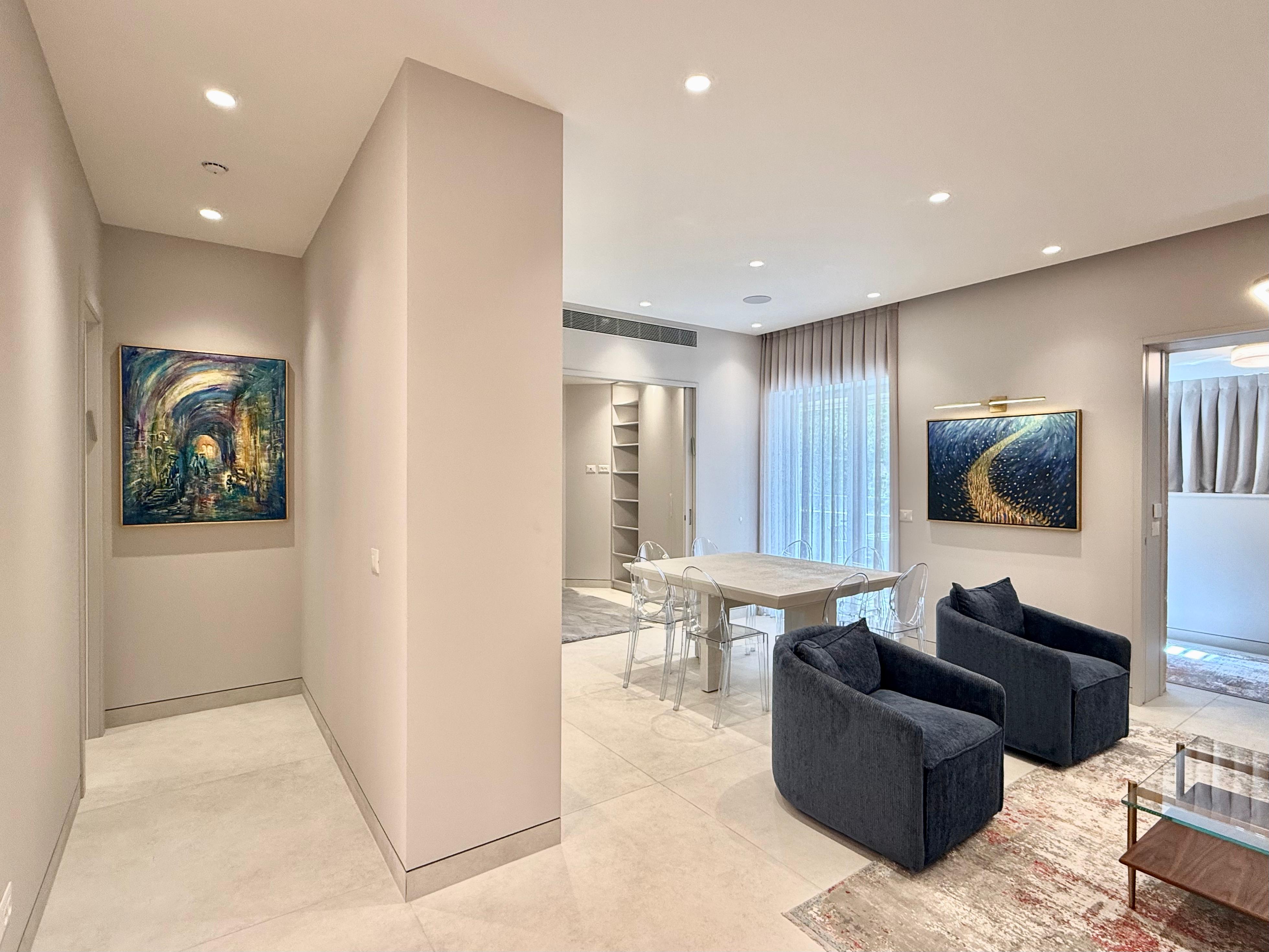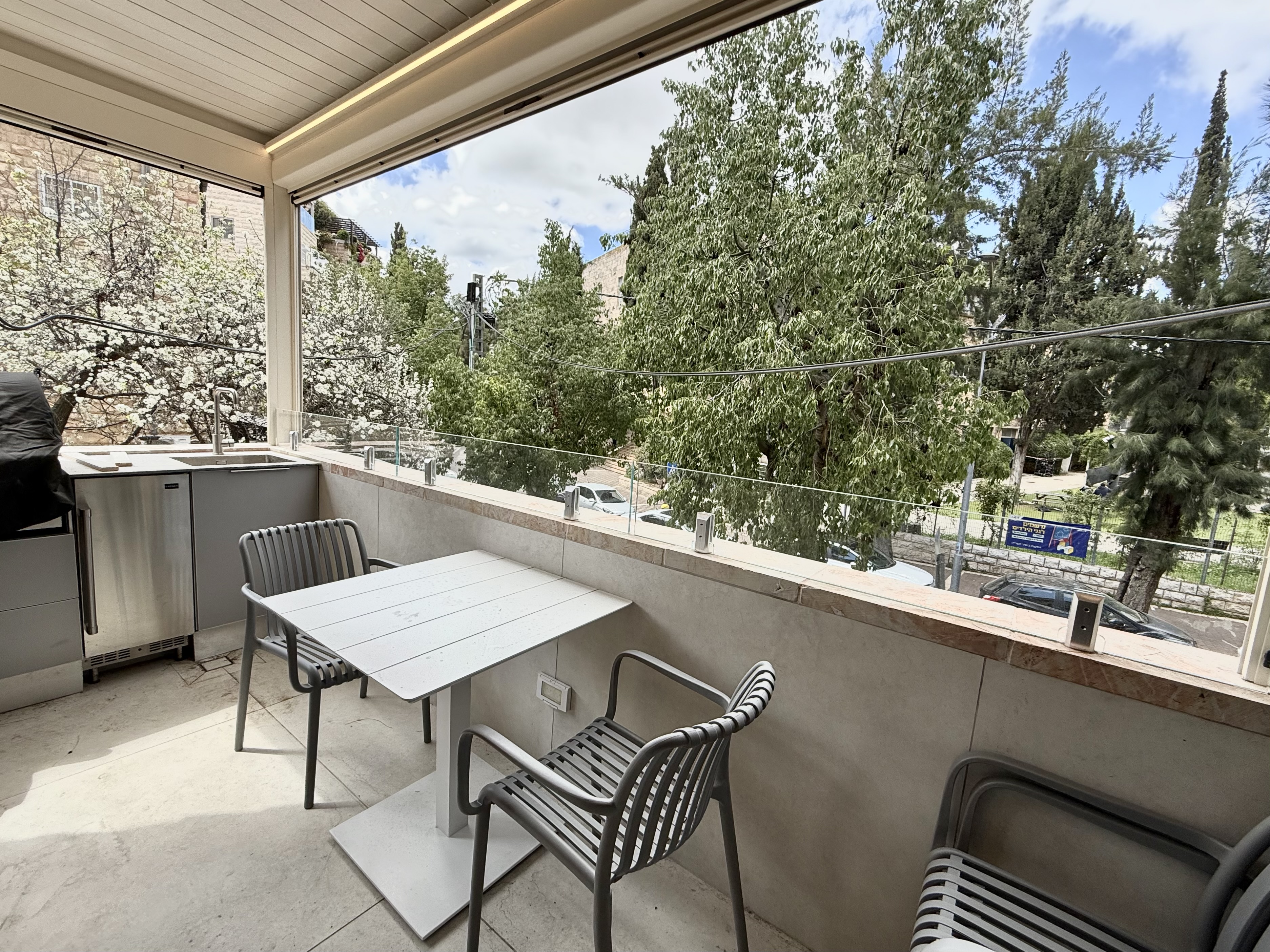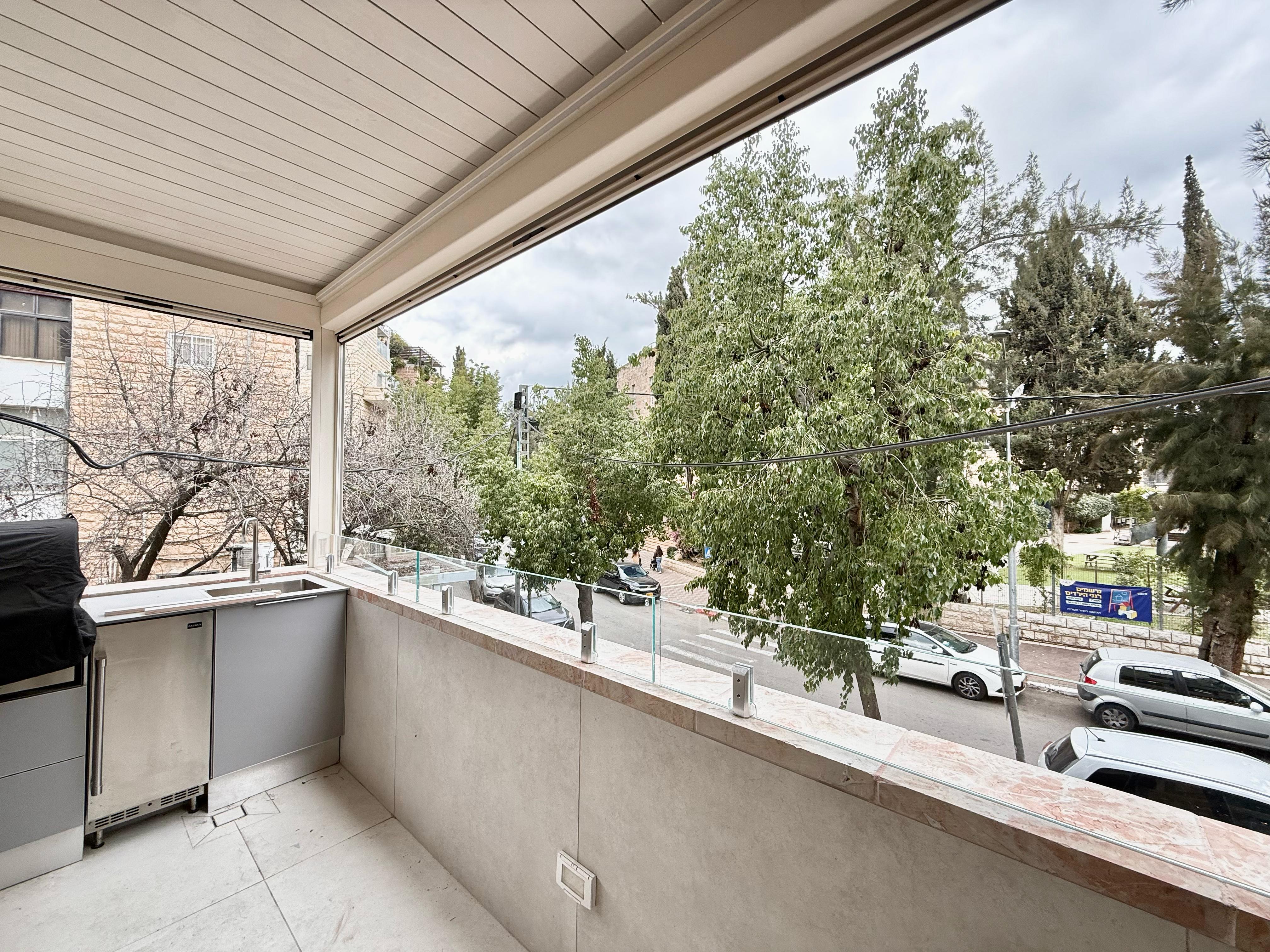 Beautiful three bedroom apartment centrally located in the heart of Rechavia. This brand new, modern apartment has many great features such as two master ensuite bedrooms, a sukkah porch with a outdoor kitchenette, and grill. The apartment is located close to many cafes, shuls, and public transportation. Don't wait, book this apartment today!