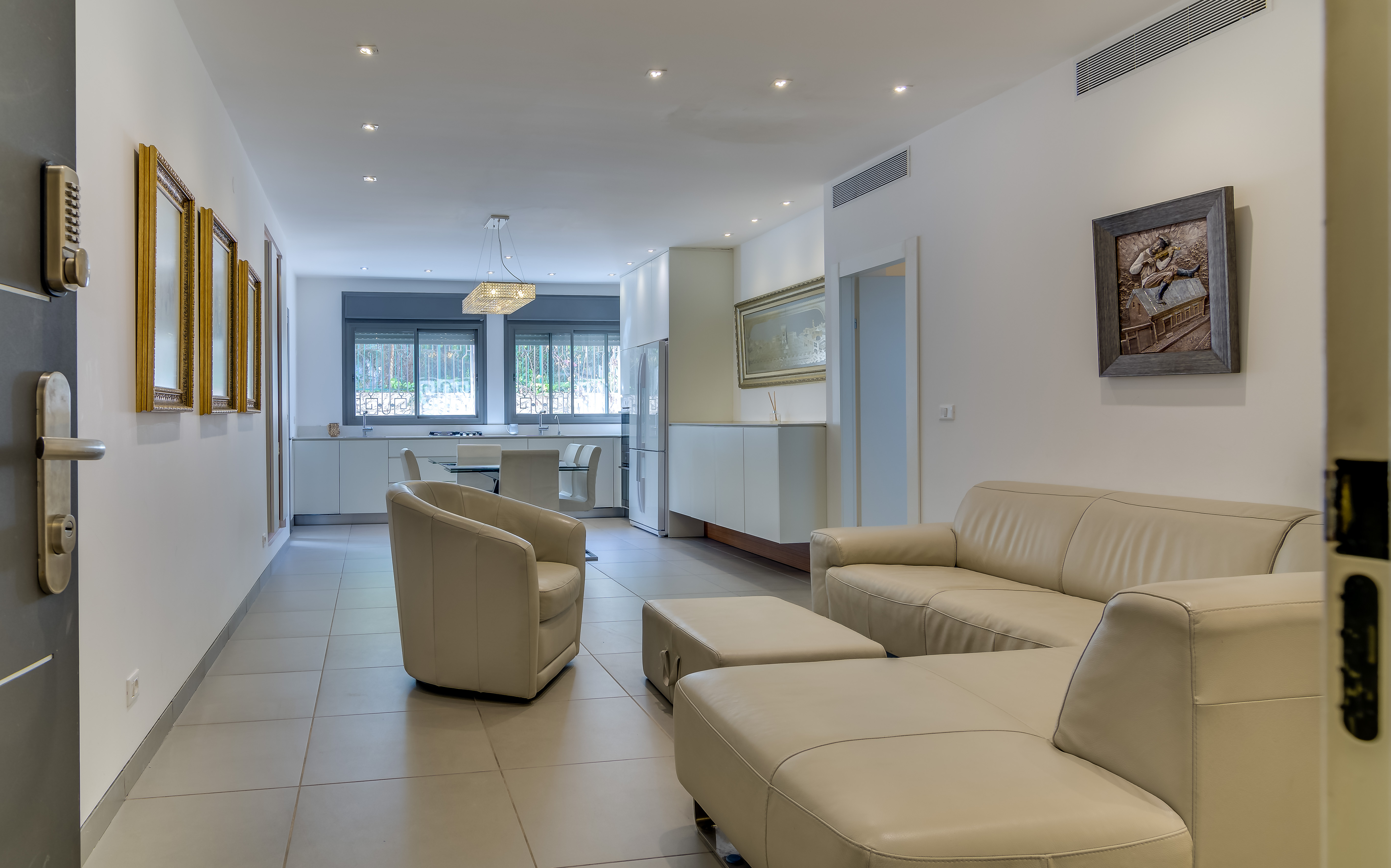 This great apartment is perfect for your trip to Israel. Located in the heart of Jerusalem, minutes away from the of Ben Yehuda and an easy walk to the Old City and Geula. Located between Yafo and Haneviim St. Across the street from the building is a supermarket for your convenience. This luxury building has 24 hour security and beautiful lobby area with free underground parking! Fully equipped and Glatt Kosher Kitchen will make your stay even more convenient. THIS APARTMENT IS FULLY WHEELCHAIR ACCESSIBLE. Book this apartment today!