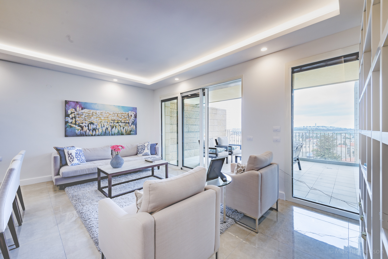 I would like to recommend the apartment at Haneviim street. The location was perfect for us! Right in time but walking distance to food, minyanim and the Kotel. It was close to everything we needed in Yerushalyim. The apartment itself was beautiful, with 3 bedrooms and a comfortable and modern dining/living room. It also has a large magnificent terrace that we were able to utilize for meetings and enjoy the view. I highly recommend it!