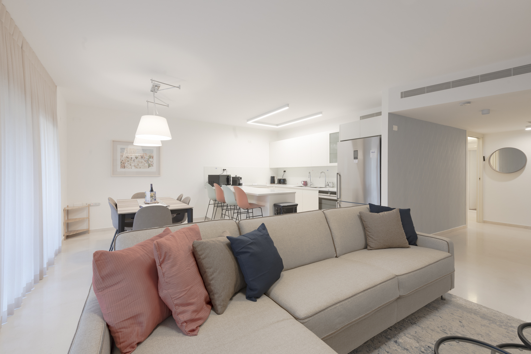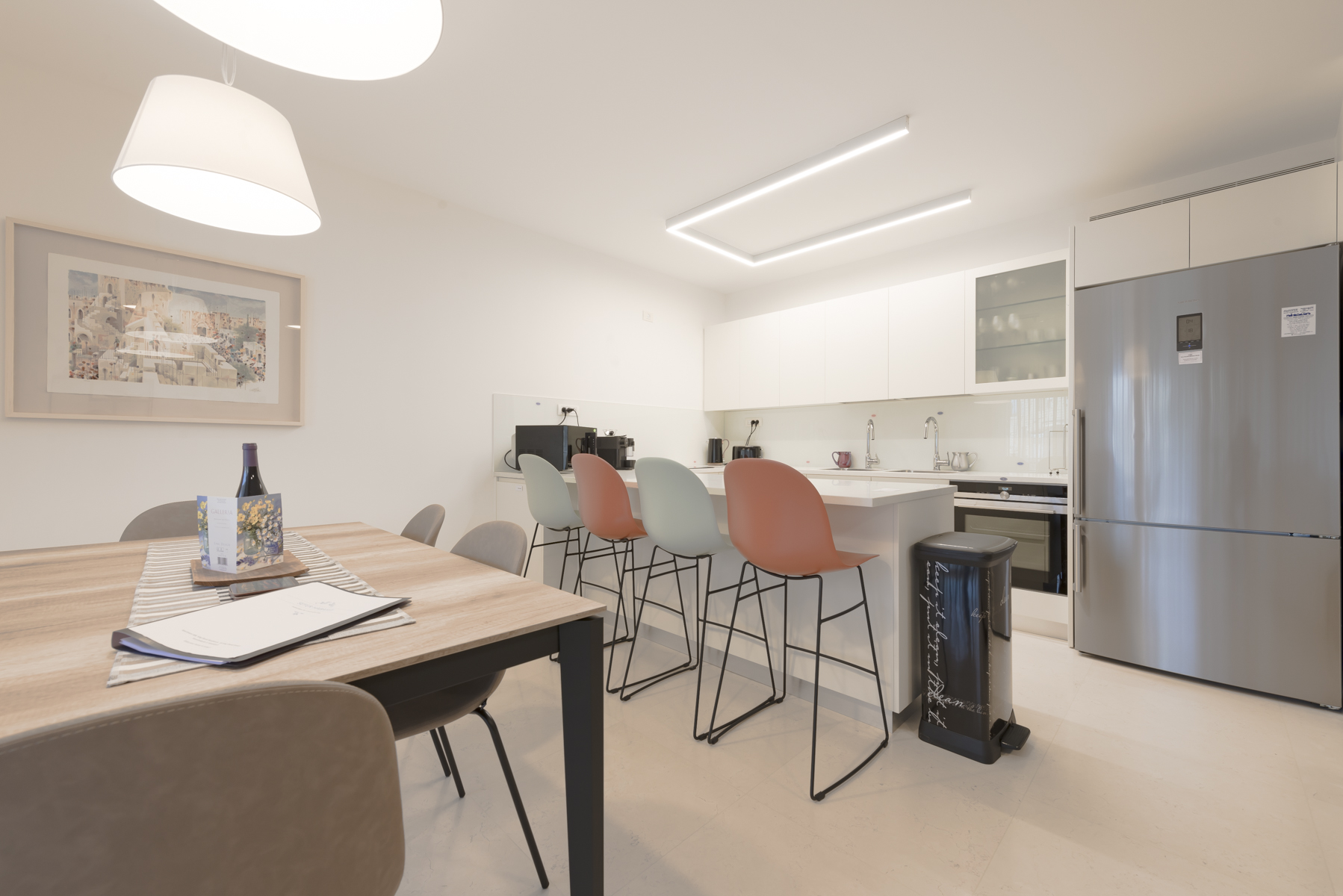The apartment was perfect for our group of four. The apartment was lovely, clean, and a great layout, and had a terrific location right near Mamilla. Everything was carefully marked for meat and dairy. When we had an issue, the team at Rentals of Distinction answered in a timely fashion. We would definitely consider using the apartment on a future trip.