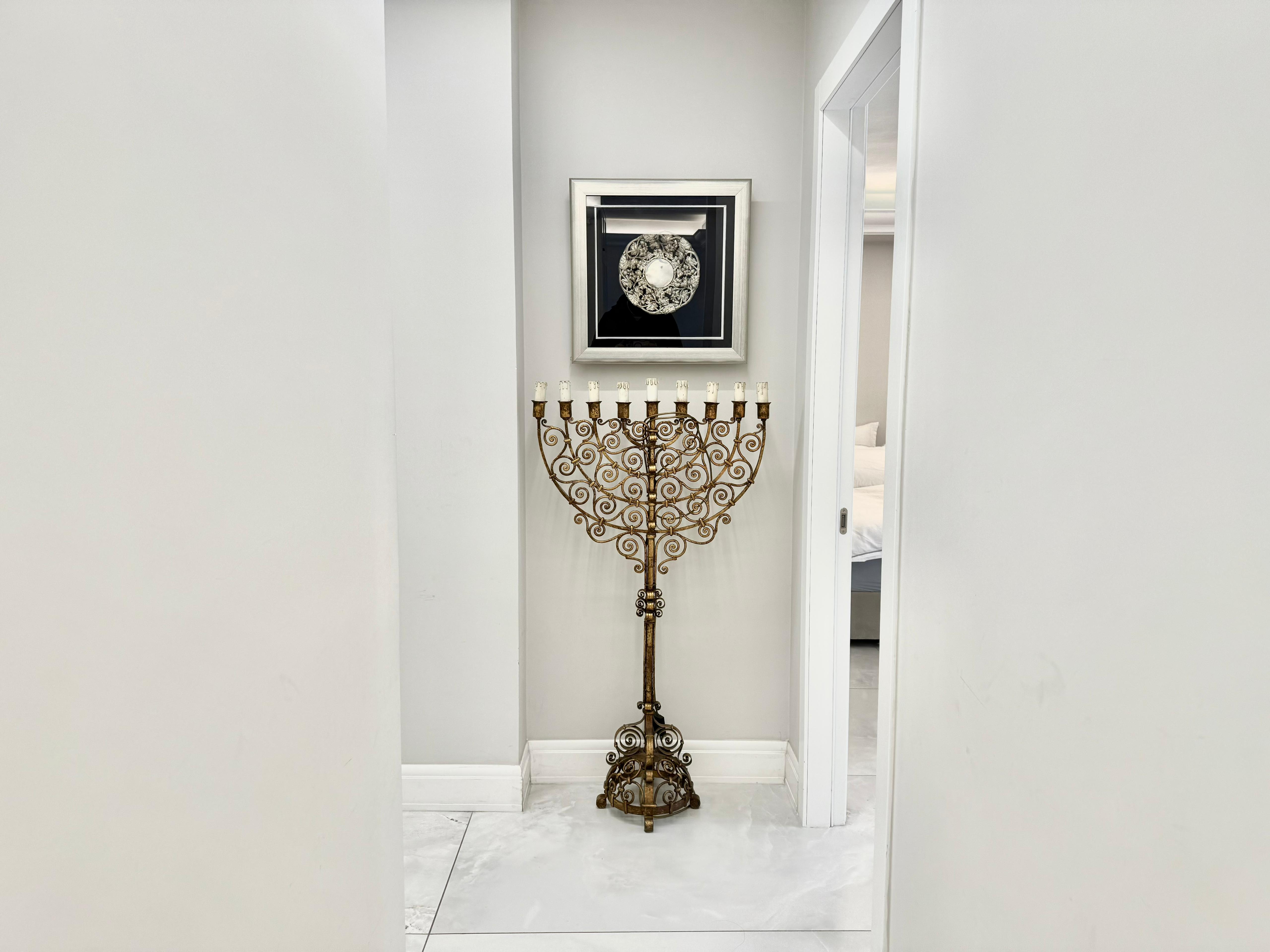 This newly renovated modern apartment has 3 bedrooms and two full bathrooms. The Sukkah porch has an entrance from the living area or the master bedroom. The large windows bring lots of natural light into the apartment giving a bright clean feel. Unique to this apartment near the third bedroom you will find a small Pesach kitchen. This apartment can accommodate your stay comfortably any time of year!
